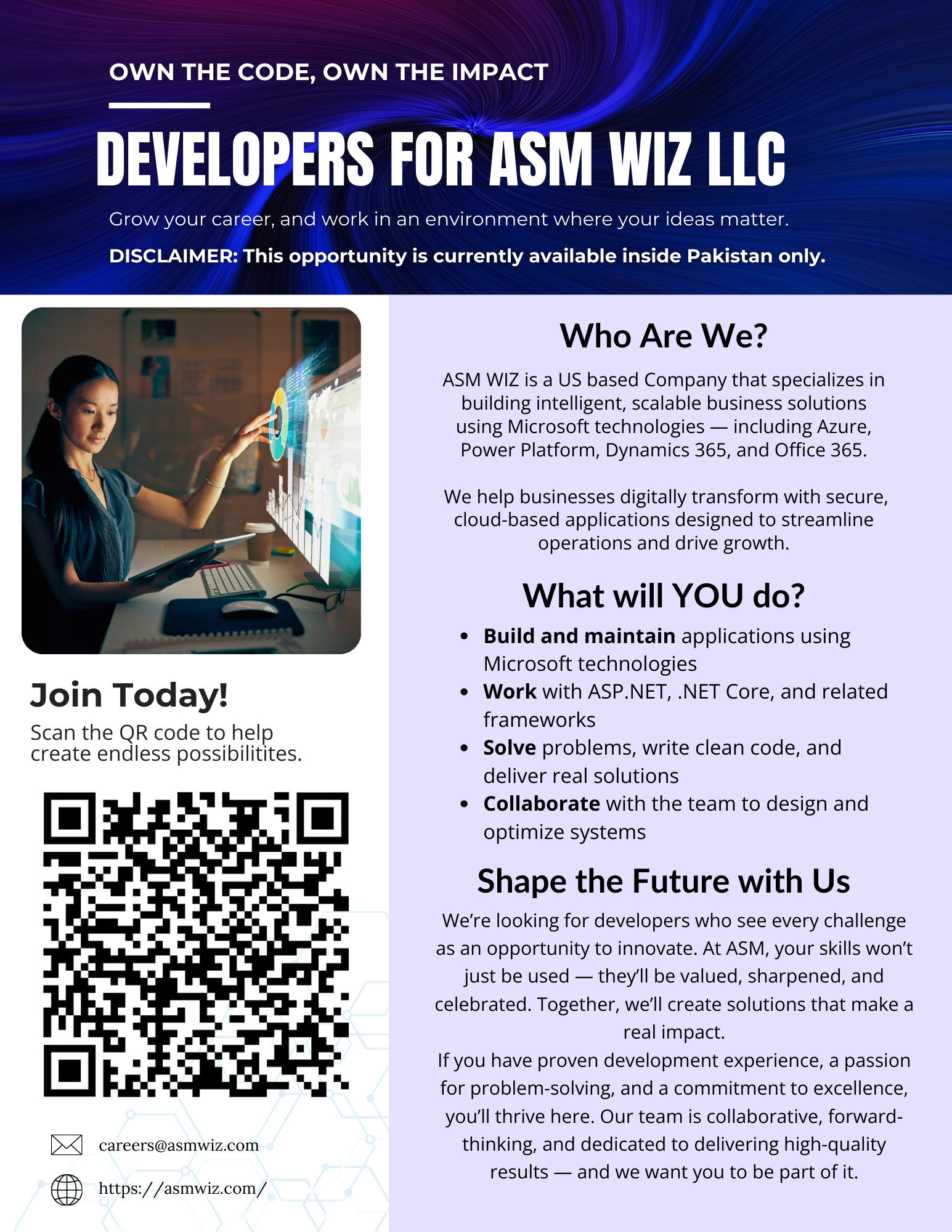 Passionate about coding and building solutions? Apply now to join our team as a Developer and contribute to exciting projects.
